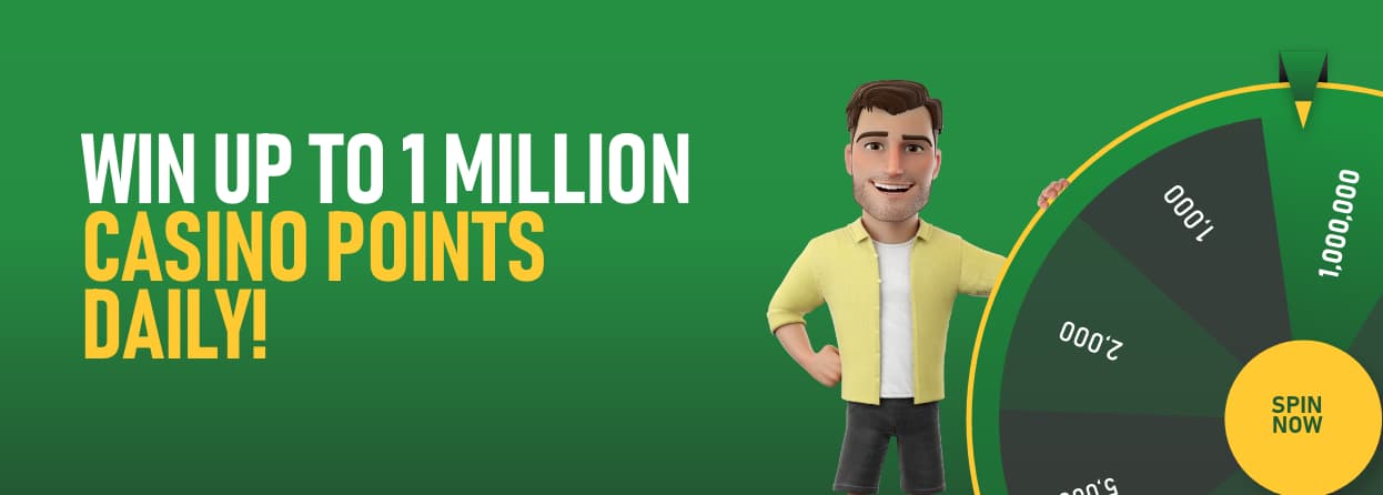Your mate Joe here and my latest creation, Joe’s Wheel of Fortune, is oiled up and just waiting for you to take it for a spin so you could bag yourself up to a whopping 1 Million Casino Points every single day!